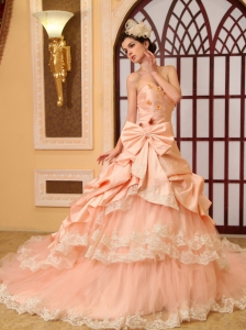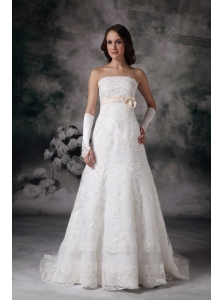 Custom Made A-line Strapless Lace Wedding Dress Bowknot Court Train