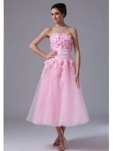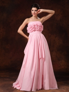 Handle-Made Flower Strapless Pink Empire Chiffon Court Train Low Cost Wedding Dress