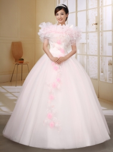 Handle-Made Flower maxi Sweetheart Pink Tulle 2013 Sweet Short Wedding Dress