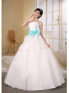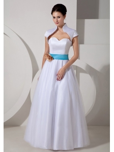 Low Cost A-line Sweetheart Wedding Dress Floor-length Taffeta Sash