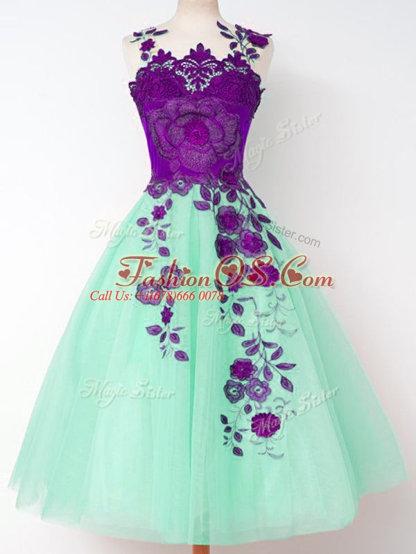 Colorful Apple Green Straps Neckline Appliques Wedding Party Dress Sleeveless Lace Up