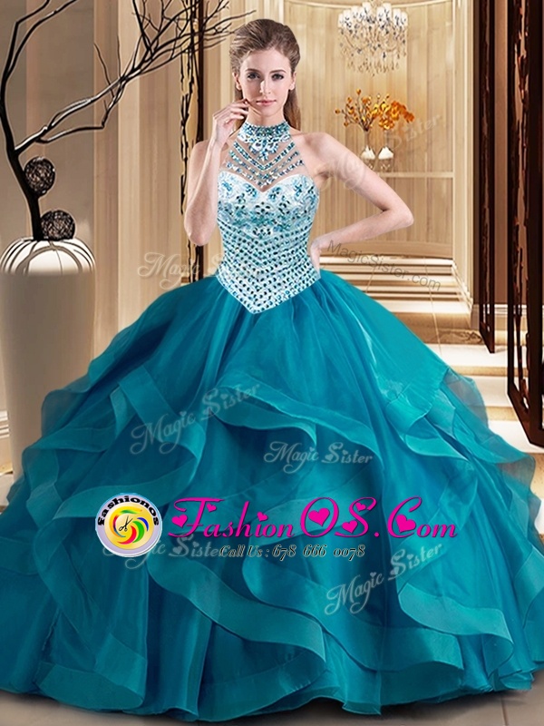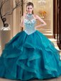 Colorful Ball Gowns 15th Birthday Dress Teal Strapless Tulle Sleeveless Floor Length Lace Up