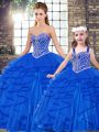 Colorful Beading and Ruffles Quinceanera Dresses Royal Blue Lace Up Sleeveless Floor Length