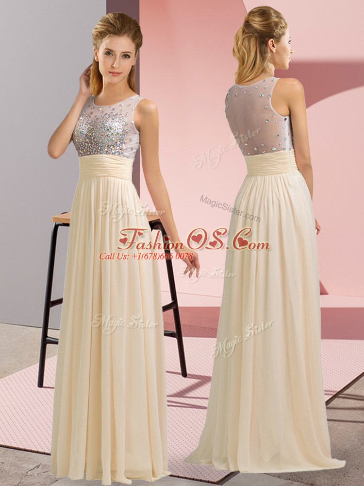 Colorful Champagne Scoop Side Zipper Beading Prom Dresses Sleeveless