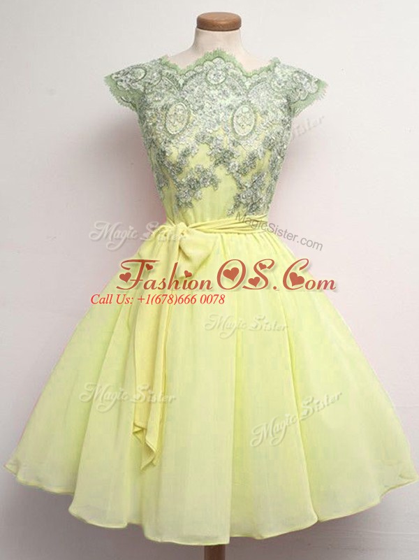Colorful Chiffon Cap Sleeves Knee Length Quinceanera Court Dresses and Lace and Belt