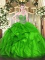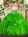 Colorful Floor Length Lace Up Quinceanera Gown Green for Military Ball and Sweet 16 and Quinceanera with Beading and Ruffles
