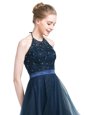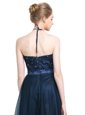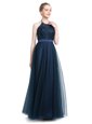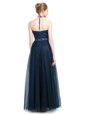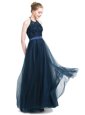 Colorful Floor Length Navy Blue Homecoming Dress Halter Top Sleeveless Zipper