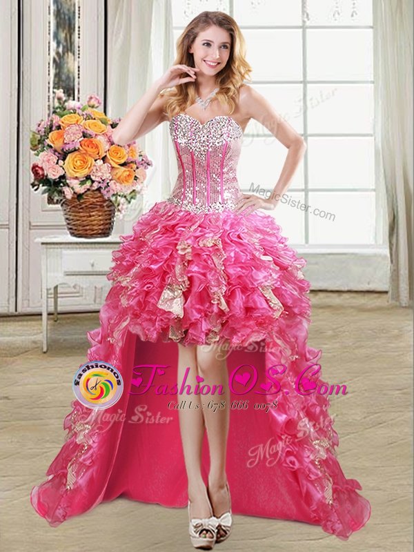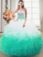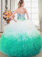 Colorful Four Piece Sleeveless Lace Up Floor Length Beading and Ruffles and Sequins Sweet 16 Quinceanera Dress