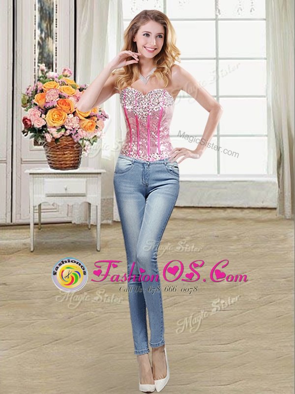 Home >  Quinceanera Dresses >  In Stock Quinceanera Dresses > Colorful Four Piece Sleeveless Lace Up Floor Length Beading and Ruffles and Sequins Sweet 16 Quinceanera Dress