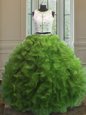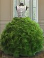 Home >  Quinceanera Dresses >  Luxurious Quinceanera Dresses > Colorful Green Ball Gowns Scoop Sleeveless Organza Floor Length Clasp Handle Appliques and Ruffles Quinceanera Dress