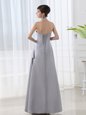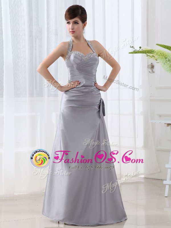 Home >  Prom Dresses >  Perfect Prom Dresses > Colorful Grey Lace Up Halter Top Beading and Ruching Dress for Prom Satin Sleeveless