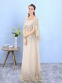 Colorful Half Sleeves Beading and Appliques Lace Up Bridesmaid Gown
