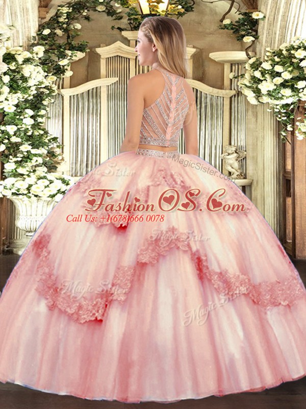 Colorful Lavender Sleeveless Beading and Appliques Floor Length Sweet 16 Dress