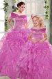 Colorful Lilac Lace Up Quince Ball Gowns Beading and Ruffles Sleeveless Floor Length