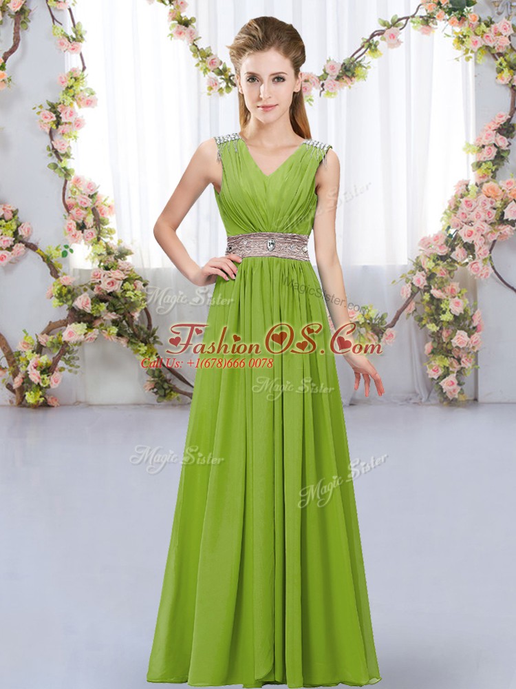 Colorful Olive Green V-neck Neckline Beading and Belt Damas Dress Sleeveless Lace Up
