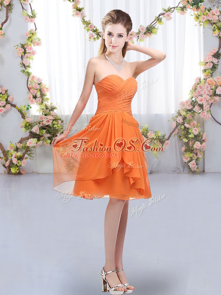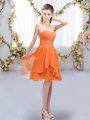 Colorful Orange Chiffon Lace Up Bridesmaid Dresses Sleeveless Knee Length Ruffles and Ruching