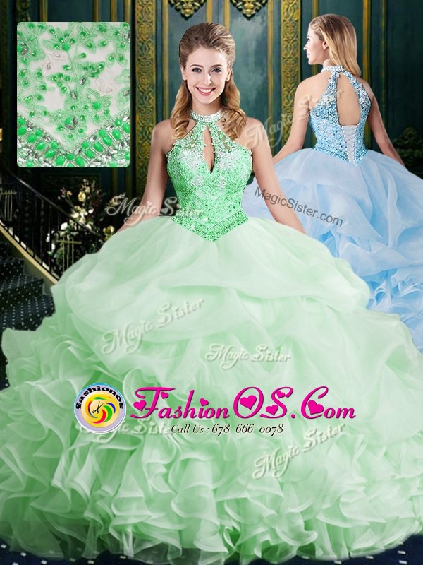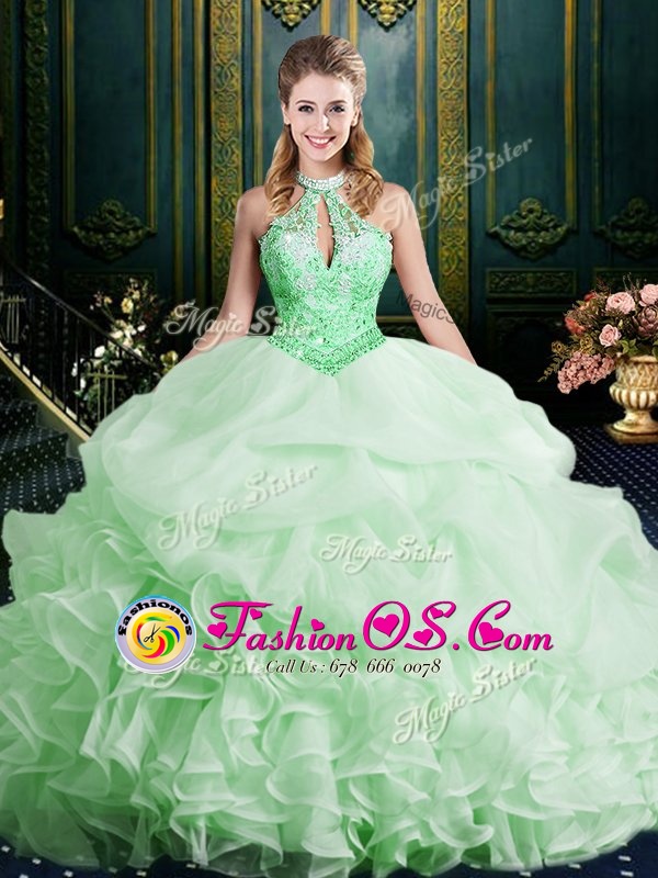 Colorful Pick Ups Sweet 16 Dress Halter Top Sleeveless Brush Train Lace Up