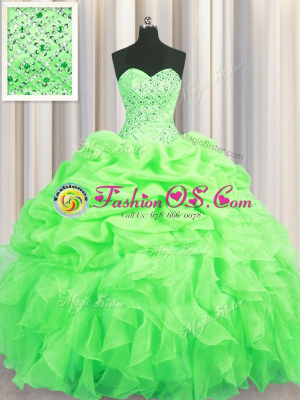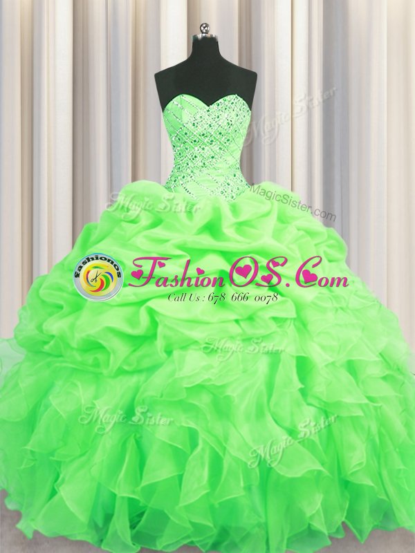 Colorful Pick Ups Sweetheart Sleeveless Lace Up Quinceanera Dress Organza