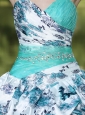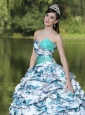 Home >  Quinceanera Dresses >  Unique Quinceanera Dresses > Colorful Printing and Organza Beaded Decorate Waist Pick-ups and Ruffles Brush Train Lovely Style For 2013 Quinceanera Dress