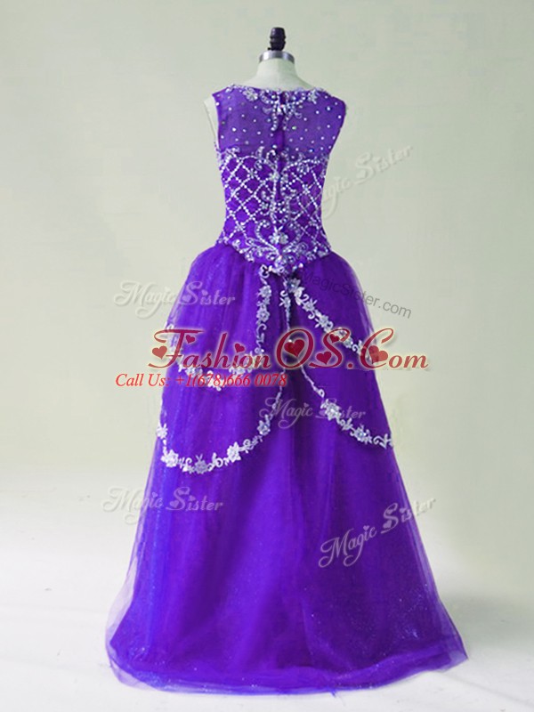 Colorful Purple Sleeveless Tulle Zipper Prom Dress for Prom and Party