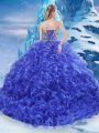 Colorful Royal Blue Ball Gowns Organza Strapless Sleeveless Beading and Appliques and Ruffles Floor Length Lace Up 15 Quinceanera Dress