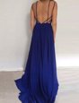 Colorful Royal Blue Scoop Neckline Ruching Prom Dress Sleeveless Backless