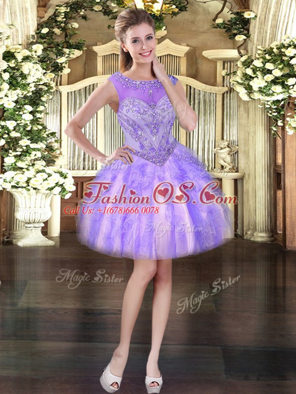 Colorful Scoop Sleeveless Quinceanera Gown Floor Length Beading and Ruffles Lilac Tulle