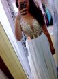Colorful Sleeveless Floor Length Beading Backless Prom Dress with White
