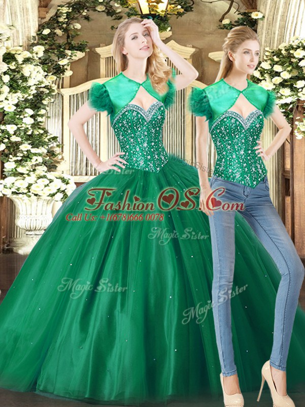 Colorful Sweetheart Sleeveless Lace Up 15 Quinceanera Dress Green Tulle