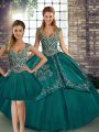 Colorful Teal Sleeveless Beading and Embroidery Floor Length Ball Gown Prom Dress