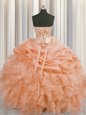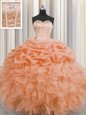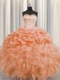 Home >  Quinceanera Dresses >  New Arrival Quinceanera Dresses > Colorful Visible Boning Sleeveless Floor Length Beading and Ruffles and Pick Ups Lace Up Sweet 16 Dress with Orange