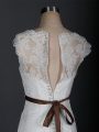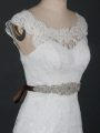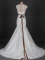 Colorful White Sleeveless Brush Train Beading and Lace Wedding Gown