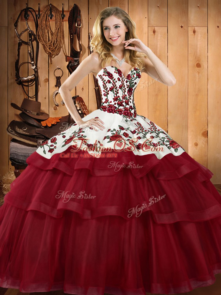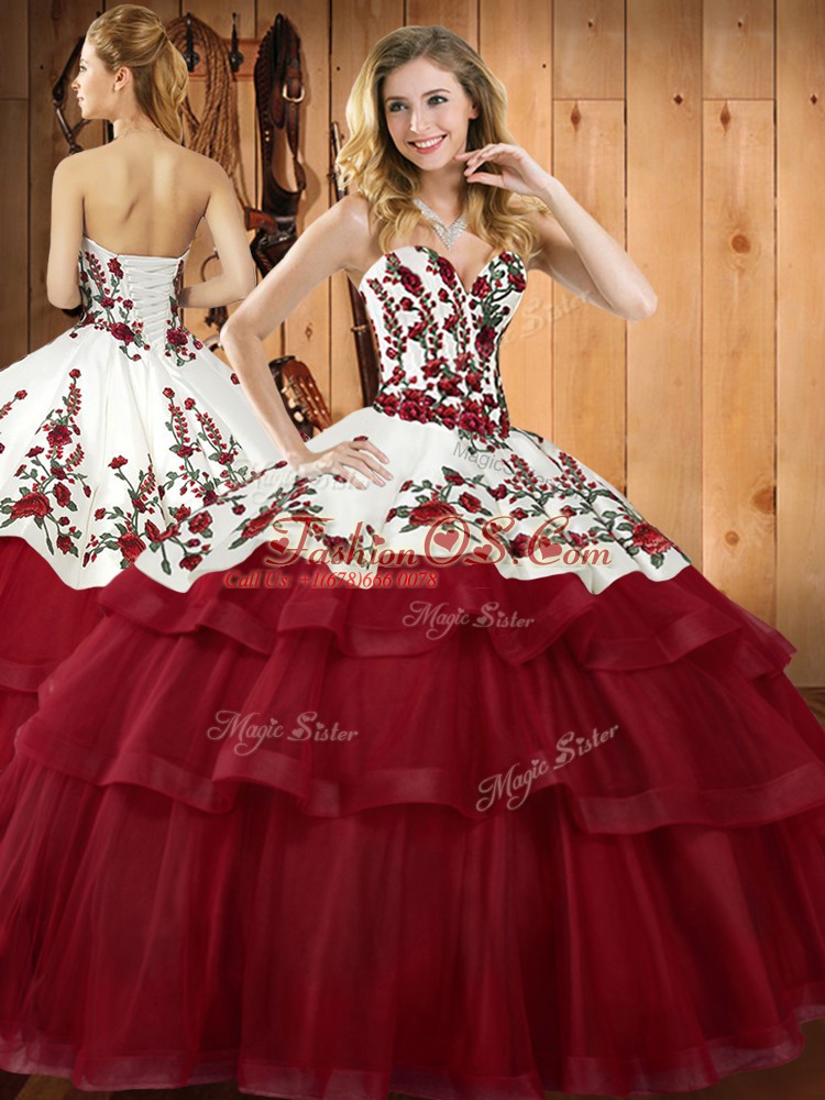 Colorful Wine Red Ball Gown Prom Dress Sweetheart Sleeveless Sweep Train Lace Up