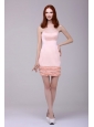 Column Baby Pink Strapless Appliques Mini-length Prom Dress