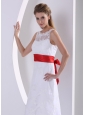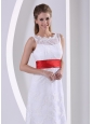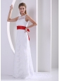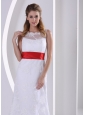 Column Bateau Lace Sash Romatic Beach Wedding Dress For Hall