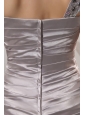 Column Beaded Decorate One Shoulder Long Prom Dress in Gray