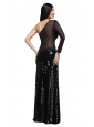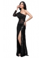 Column Black One Shoulder Long Sleeves Sequins High Slit Prom Dress
