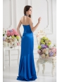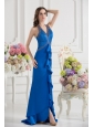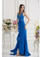 Column Blue Empire Halter Top Prom Dress with  Beading and High Slit