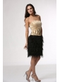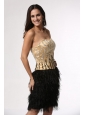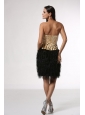 Home >  Prom Dresses >  Popular Prom Dresses > Column Champagne and Black Strapless Feather Beading Satin Prom Dress