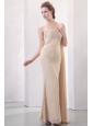 Home >  Wedding Dresses >  Perfect Wedding Dresses > Column Champagne One Shoulder Watteau Train Beading Chiffon Wedding Dress