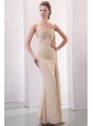Column Champagne One Shoulder Watteau Train Beading Chiffon Wedding Dress