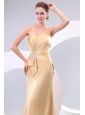 Home >  Prom Dresses >  Cheap Prom Dresses > Column Champagne Spaghetti Straps Ruching Appliques Satin Long Prom Dress