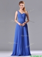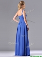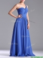 Column Chiffon Beading and Ruching Blue Prom Dress with One Shoulder