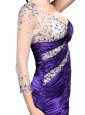 Home >  Prom Dresses >  Best Prom Dresses > Column Eggplant Purple One Shoulder Long Sleeves Beading Mini-length Prom Dress
