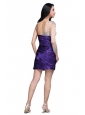 Column Eggplant Purple One Shoulder Long Sleeves Beading Mini-length Prom Dress
