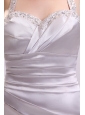 Column Gray Ruching Beading Halter Top Floor-length Prom Dress