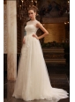Column Halter Beading Brush Train Organza Wedding Dress