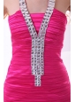 Home >  Prom Dresses >  Short Prom Dresses > Column Halter Hot Pink Ruching and Beading Mini-length Prom Dress