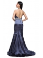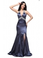 Home >  Prom Dresses >  Sexy Prom Dresses > Column Halter Top Beading Navy Blue Taffeta High Slit Prom Dress