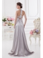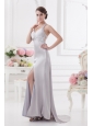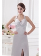 Column Halter top High Slit Beading Prom Dress in Light Grey